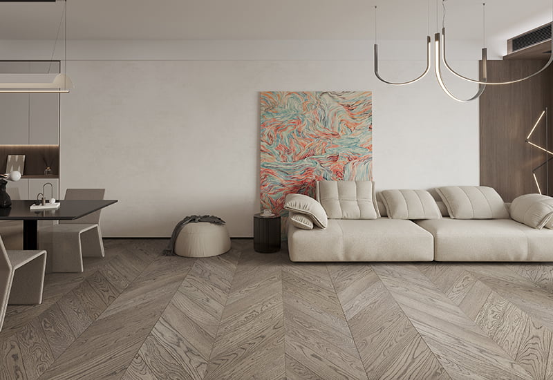 Îmbunătățește -ți spațiul cu podele din lemn Chevron Chevron, cu lac de stejar alb, un amestec bun de stil și durabilitate. Suprafața periată scoate textura naturală a stejarului alb, creând un finisaj moale, tactil, care adaugă căldură și rafinament în orice cameră. Modelul clasic Chevron oferă un design geometric atemporal, care se încadrează perfect atât în interioarele moderne, cât și în cele tradiționale. Încadrat cu un grad ABC, această podea este proiectată pentru performanțe de durată, ceea ce îl face ideal pentru zonele cu trafic ridicat atât în mediul rezidențial, cât și în cele comerciale. Acoperirea cu lac UV nu numai că protejează lemnul, dar și își îmbunătățește frumusețea naturală, asigurându-se că pardoseala rămâne uimitoare în timp. Design atemporal și finisaj de înaltă calitate fac din alegerea ideală pentru crearea unei atmosfere primitoare și de durată.