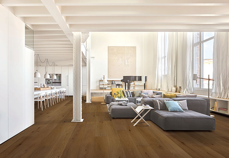 CITEŞTE MAI MULTPardoseala din lemn carbonizată cu periat Warren este o alegere premium pentru pardoseala care combină durabilitatea cu o estetică sofisticată. Fabricat din stejar alb de înaltă calitate, are un finisaj periat pentru a evidenția textura naturală a lemnului, împerecheată cu un tratament carbonizat care adâncește tonul și adaugă un personaj bogat și cald. Construcția proiectată asigură stabilitatea și rezistența, ceea ce o face potrivită atât pentru spațiile rezidențiale, cât și pentru cele comerciale. Cu designul său atemporal și performanța robustă, Warren este ideal pentru crearea de interioare elegante și confortabile.